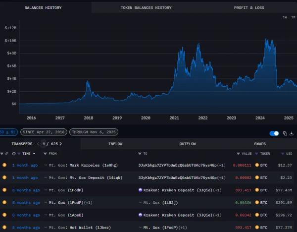 Связанный с обанкротившейся биржей Mt.Gox кошелек перевел 10 608 BTC на сумму более $953 млн на новый адрес. Это первая крупная транзакция за последние восемь месяцев. Источник: Arkham. Ранее Mt.Gox